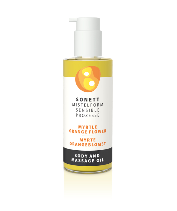 Valuable essential oil made from the flowers of organic orange trees, also known as neroli oil, gives an incomparable fragrance to this massage oil. The organic common-myrtle oil is obtained by steam- distilling leaves and flowering branches of the evergreen common-myrtle shrub.