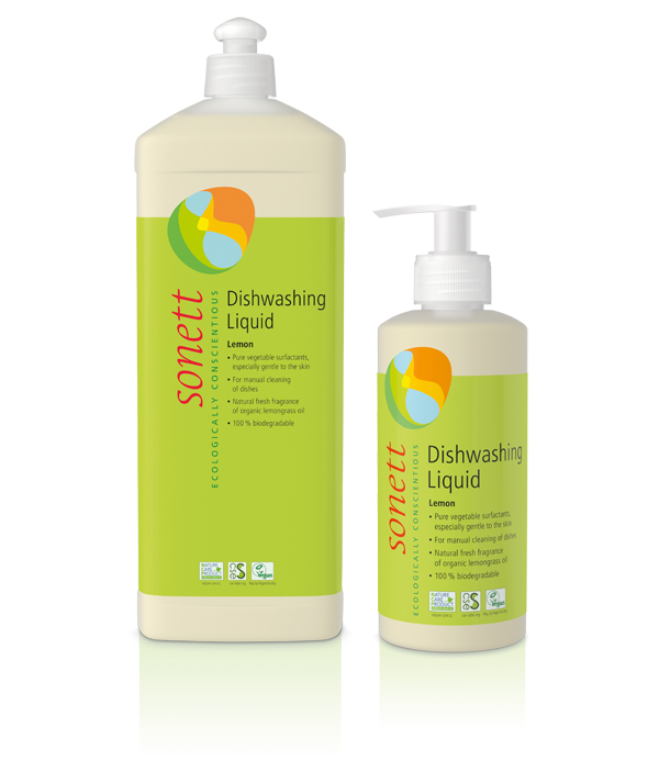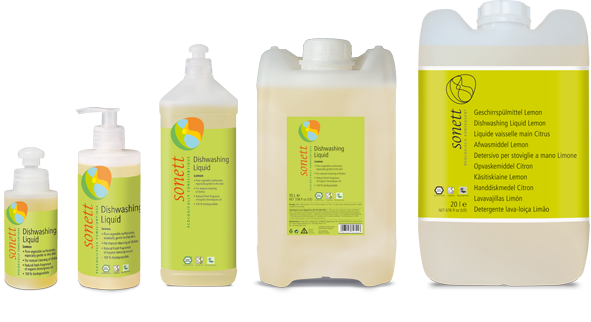 The dishwashing liquid being highly concentrated, it is very economical in its use. The surfactants used, i.e. coconut oil alcohol sulphate and sugar surfactants, are 100 % biodegradable and very gentle to the skin as well, thanks to this combination.