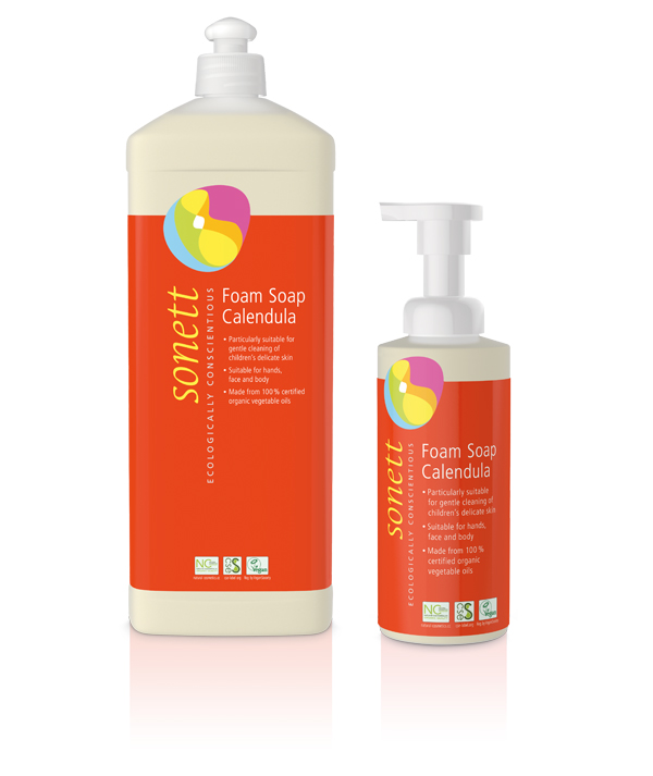 Soap made from vegetable oils has the unique property that, right after its use, it reacts chemically with the limescale always present in waste water, forming calcium soap. As a result, the surfactant effect of the soap is being neutralized (primary degradation). This primary degradation takes place within a few hours. Subsequently the calcium soap is, by microorganisms, 100 % decomposed into carbon dioxide and water (secondary degradation). Ethanol reintegrates into the natural cycle within a few hours. Apart from natural glycerine released from the oils during saponification, we add plant-based glycerine which binds moisture. Despite the fact that during the manufacturing of sugar surfactants, constituents are being extracted from the plant-based raw materials starch, sugar, and fat, they remain completely intact in their natural molecular structure. For this reason it is relatively easy for the microorganisms to 100 % decompose these surfactants rapidly.