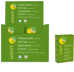 Soap is slightly alkaline in use. The green chlorophyll colouration of the bars of soap may become lighter by exposure to light. This does not, however, impair the stain-removing performance of the gall soap. The brownish colour appearing is the natural colour of gall.