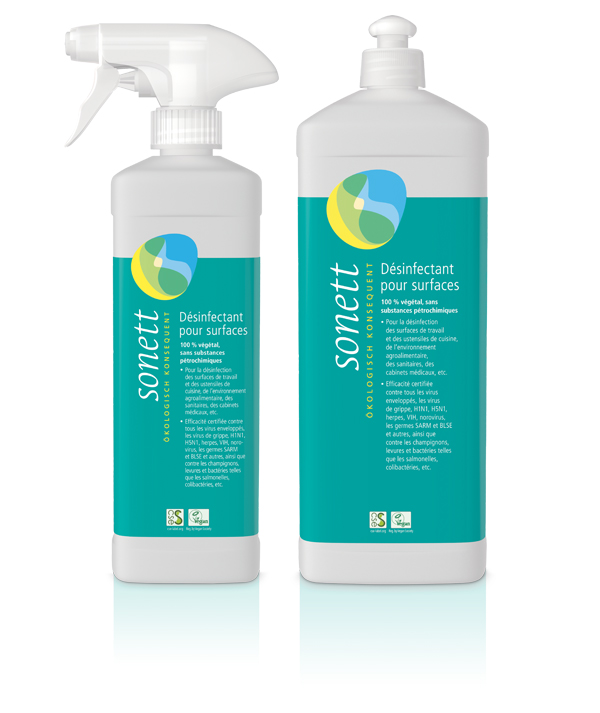 Utiliser le Désinfectant pour surfaces Sonett avec précaution. Avant toute utilisation lire l'étiquette et les informations concernant le produit.
