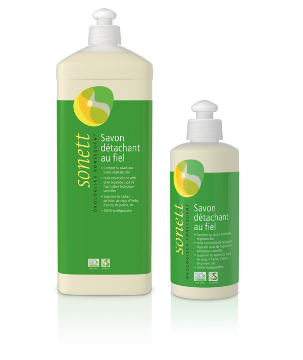 Le fiel de bœuf fait partie des détachants traditionnels, dont les matières actives principales, les acides biliaires (l'acide cholique et taurocholique), dispersent finement les graisses et les substances lipoïdiques et dissolvent les colorants en les liant. Le savon à l’huile d’olive et de colza / de tournesol, saponifié à l’aide de potasse caustique, dissout la saleté et optimise le pouvoir détachant du fiel de bœuf. Le tensioactif de sucre est obtenu par transformation chimique des matières premières végétales (sucre, fécule et graisse de coco) grâce à des acides. L’huile d’écorce d’orange augmente et renforce la dissolution des matières grasses.