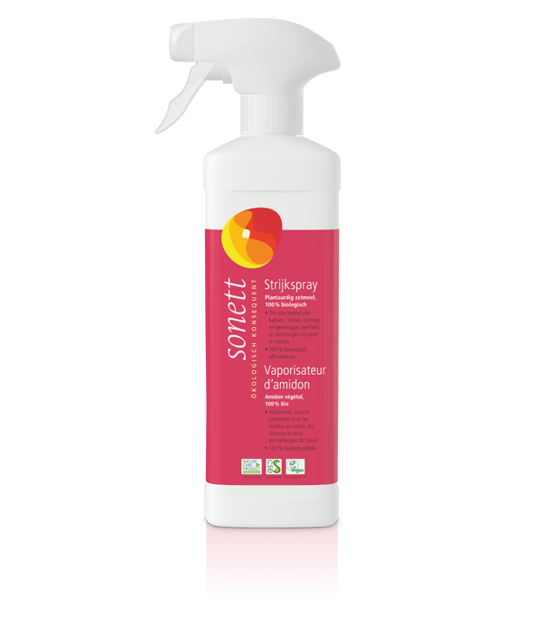 En comparaison avec des produits conventionnels, le Vaporisateur d’Amidon Sonett ne contient pas de silicone pétrochimique pour faciliter le glissage. Il amidonne et entretient les tissus grâce aux composants à 100 % végétaux, majoritairement issus de l’agriculture biologique.