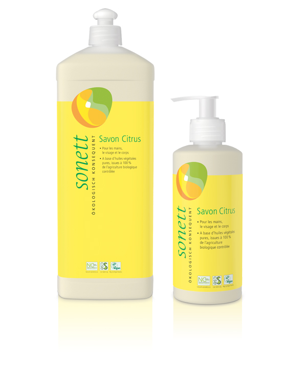 Le savon à base d’huiles végétales a pour particularité unique de se lier, immédiatement après son utilisation, avec le calcaire présent dans l’eau. Ainsi le savon neutralise sa propriété tensiosuperficielle en quelques heures (dégradation primaire). Ce savon de calcium est ensuite décomposé entièrement par les micro-organismes en CO2 et H2O (dégradation secondaire). L’éthanol réintègre le cycle de la nature en quelques heures. En plus de la glycérine naturelle, libérée par les huiles lors de la saponification, nous ajoutons de la glycérine végétale, qui permet de préserver l’hydratation de la peau.